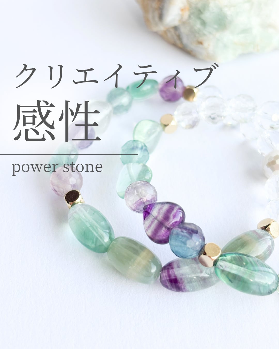 様々なサイズの天然石を使い、デザイン性を高め、天然石ブレスレットの数珠感を感じさせません。