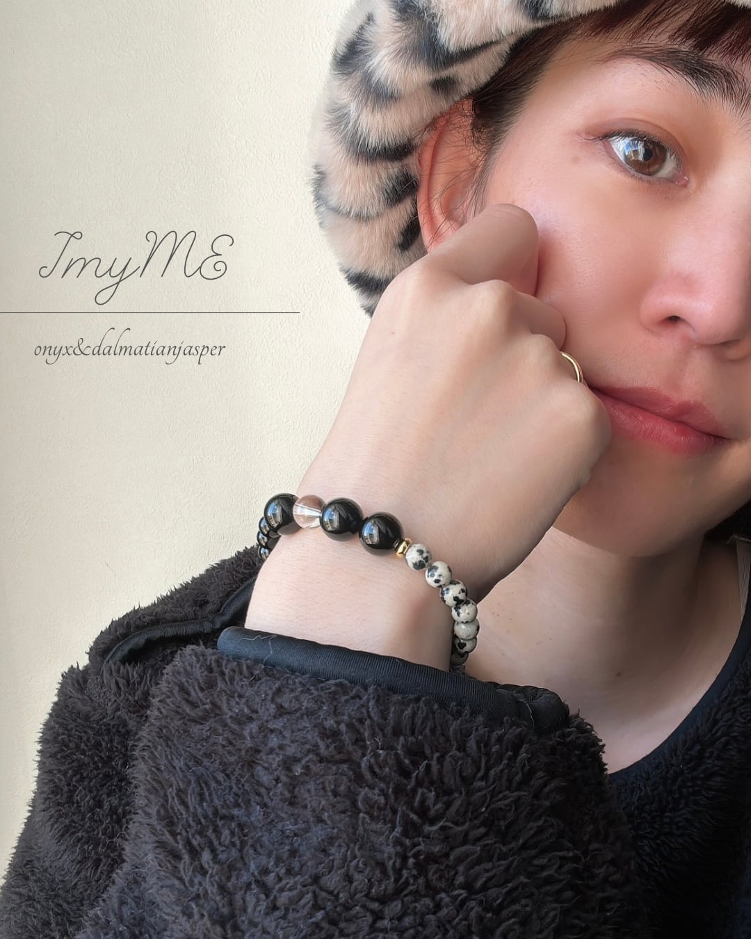 様々なサイズの天然石を使い、デザイン性を高め、天然石ブレスレットの数珠感を感じさせません。